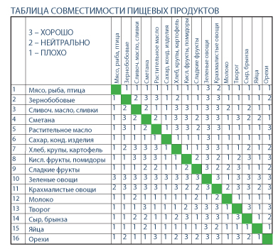 Составить образец «раздельного» меню-раскладки попробовал в своей книге и доктор Шелтон.