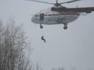 Летная база МЧС России в г.Владимир. 2011г. Илья Форсеев отрабатывает спуск с вертолета МИ-8. (высота 50 метров)