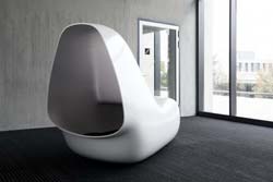 Естественная потребность человека побыть наедине с собой может быть удовлетворена при помощи вот такого вместилища, получившего название SleepBox – "ящика для сна". Данный извилистый объект представляет собой своеобразное место комфорта и расслабления, которое можно располагать как в офисах, так и в аэропортах и других общественных и полуобщественных местах. Разместившись в такой емкости полулежа, человек оказывается тишине и покое, даже если он в это время находится в фойе крупного универсама, где только что объявили о тотальной распродаже.