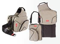 Сумка выполнена из прочной ткани и имеет множество отделений и карманов, в ней всему найдется место: планшетнику или нетбуку, фотоаппарату, блокноту, ключам, флэшкам, телефону и массе других нужных гаджетов. Сумка трансформируется из небольшой «барсетки» в обычную сумку на ремне или даже рюкзак, а может превратиться в заплечную сумку, состоящую из двух частей. Для удобства пользования в предусмотрены карабины и кольца, карманы-органайзеры, есть даже карман для бутылки и дождевик. Ее можно носить десятью различными способами, что позволяет путешественнику чувствовать себя комфортно на любом виде транспорта и практически в любой ситуации: все необходимое всегда под рукой и на своем месте, а руки свободны.