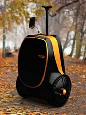 Дизайнеры компании KickboardUSA снабдили обычный-чемодан-рюкзак откидной планкой на колесиках – и вот результат! Дополнительные детали практически не добавляют веса багажу, вы практически с ветерком добираетесь от парковки до места регистрации и даже можете взять чемодан в салон самолета, как ручную кладь – в сложенном виде он занимает совсем немного места.